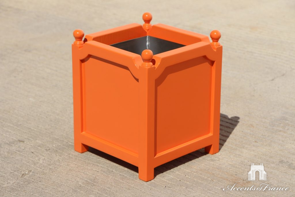 Bac à Plante en bois de style Crossette avec doublure en métal. Montré en 10cm x 10cm avec couleur personnalisée. Tailles, couleurs, matériaux et embouts personnalisés disponibles sur demande