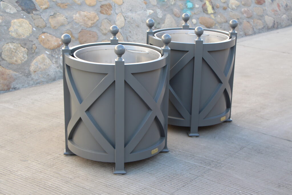 Aluminium round cross planter 26″, painted in custom Grey color.