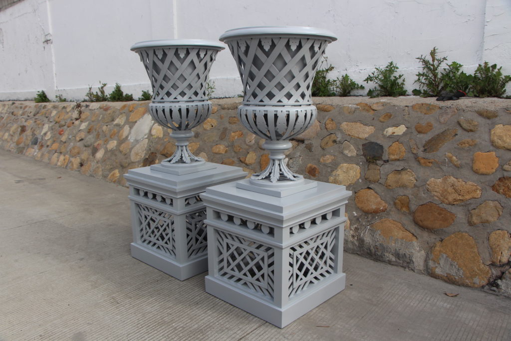 Custom pedestal Trianon with standard Trianon vase, all in aluminum