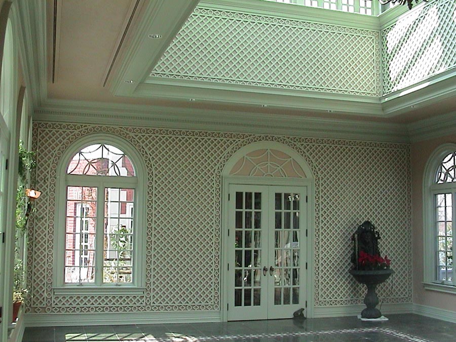 This is an interior treillage that was done here. The verranda is remodeled with a light green treillage against the wall.