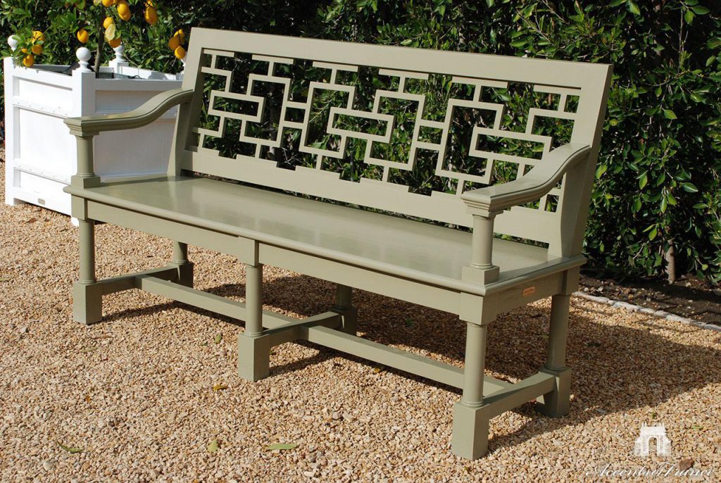 Outdoor garden bench with 3 seats in mahogany painted in custom color. Custom sizes, colors, materials available upon request.