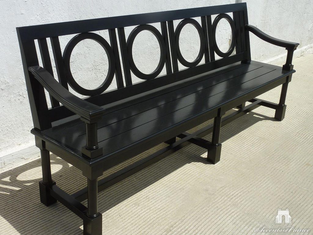 Teak outdoor garden bench with 4 seats, Shown in custom color with yacht finish. Custom sizes, colors, materials available upon request.
