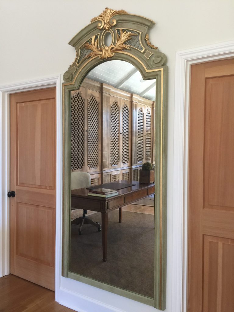 Standard wood Trumeau du Roi with gold leaf and custom color. Mirror not included. Custom sizes, colors, materials available upon request.