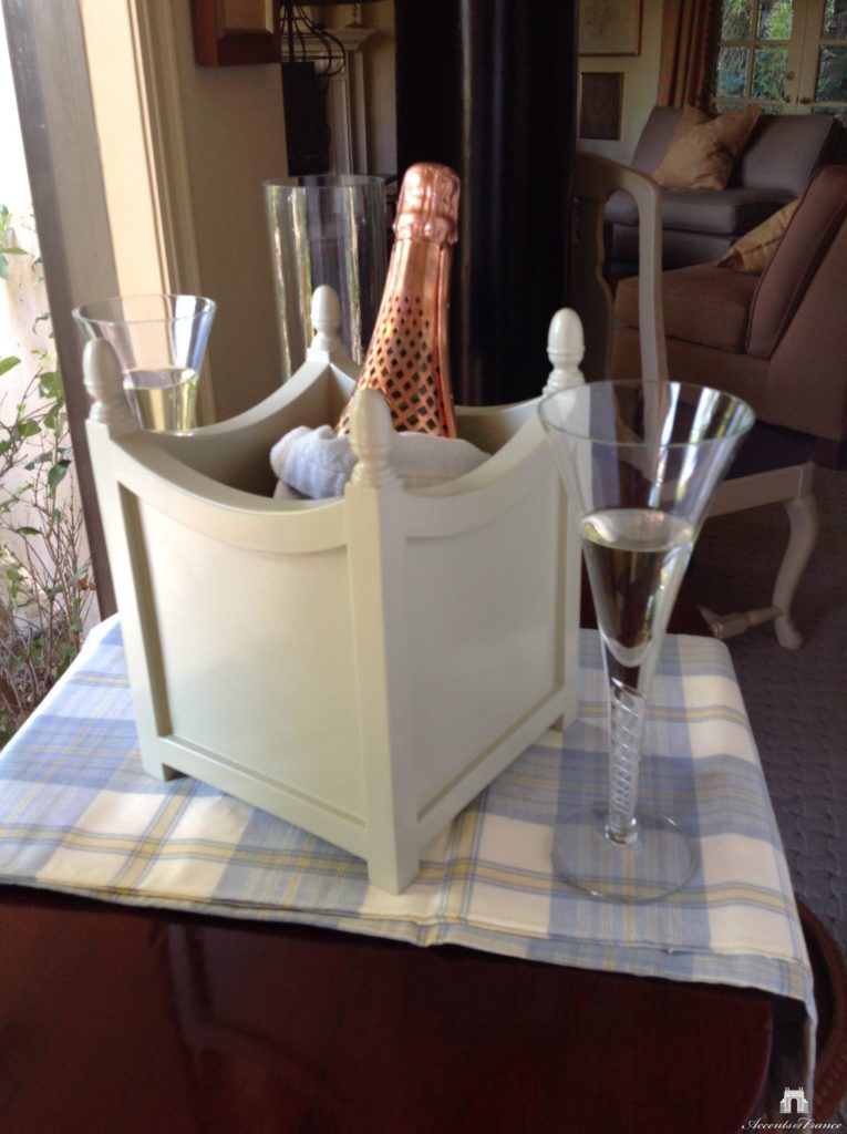 Tabletop wood planter box with acorn finial and metal liner. Shown in 8″ with custom color. Custom sizes, colors, materials and finials available upon request.