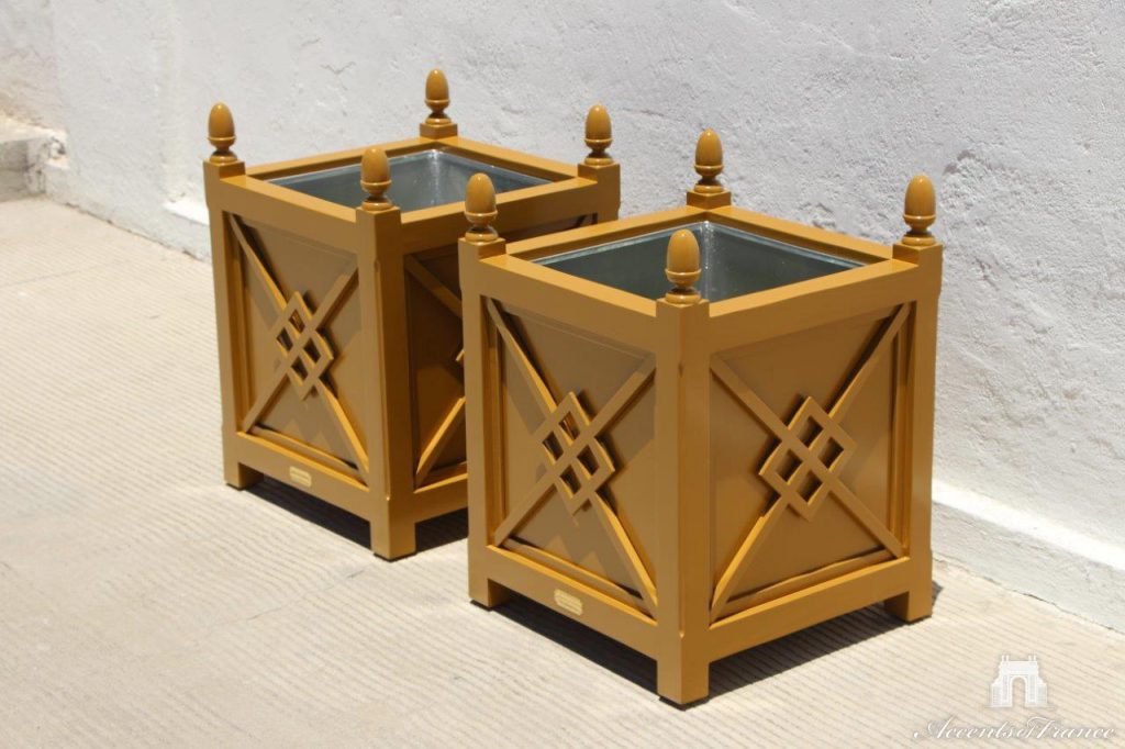 Standard Asian-style outdoor planter with metal liner and acorn finial. Shown in 20″ with custom paint. Custom sizes, colors, materials and finials available upon request.