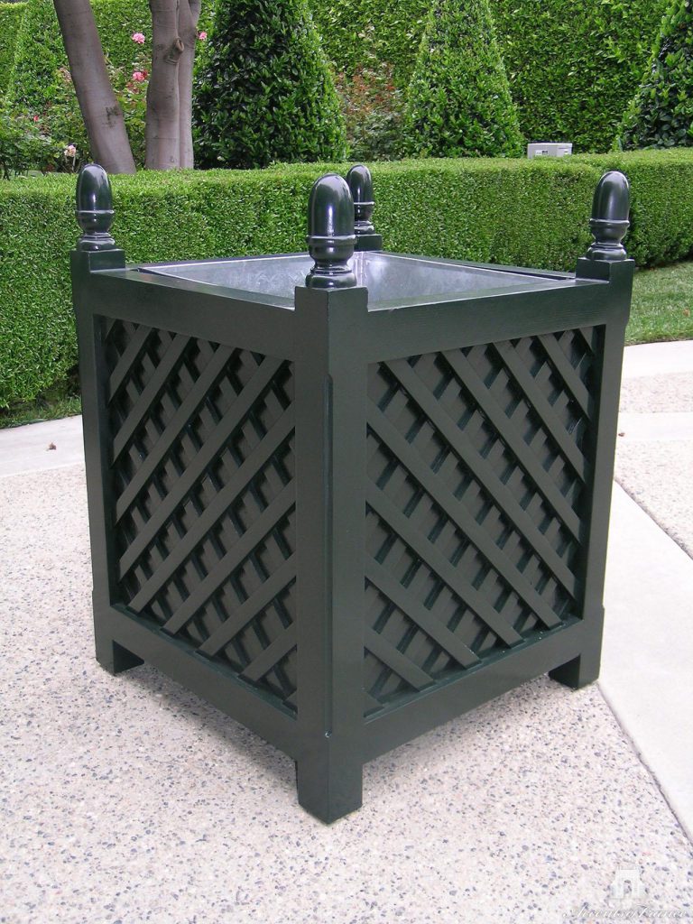 Wood Treillage Planter Box with Acorn Finial