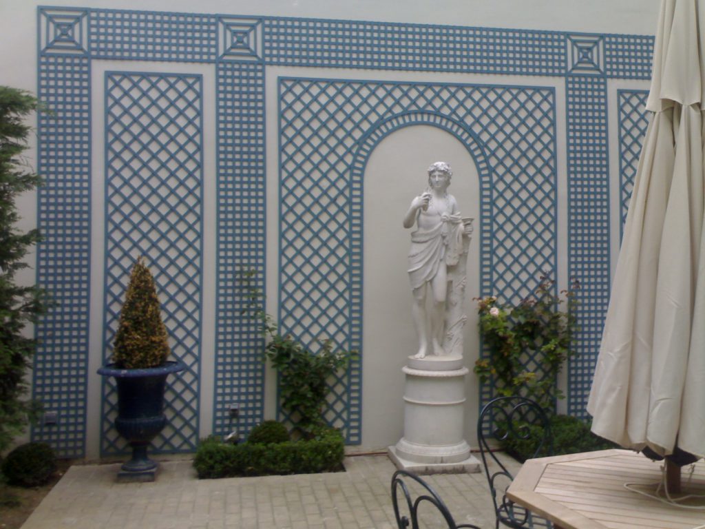 Greater sophistication is added to the wall with a decorative treillage.