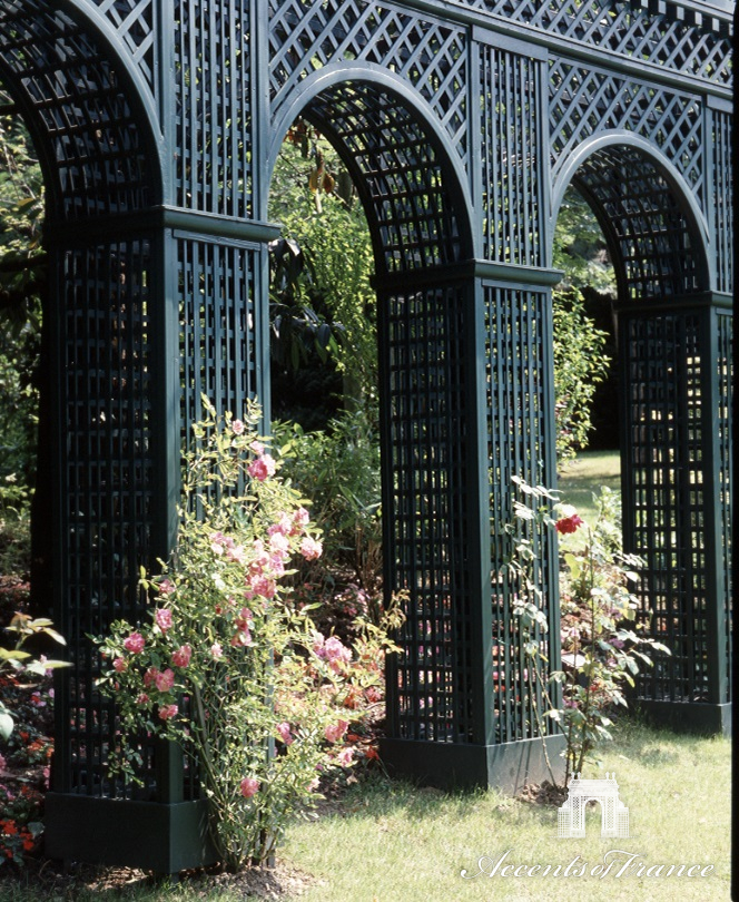 Custom Decorative Portique with structure in metal and wood treillage. Painted in custom color.