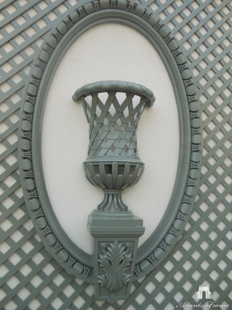 Half Elysee Vase in Oeil de Boeuf lattice panel, painted in custom color. Custom sizes, colors, materials available upon request.
