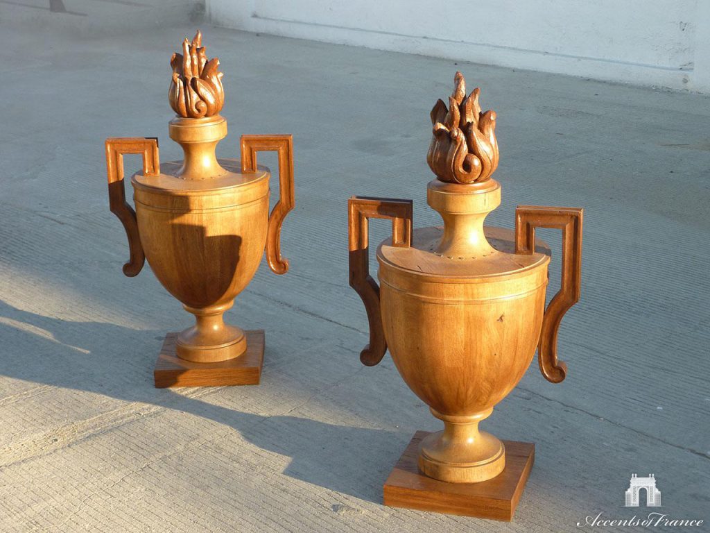 Wooden Urn made of Oak with flame design and finished with varnish. Custom sizes, colors, materials available upon request.